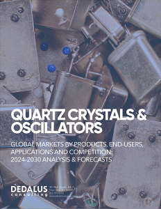 Dedalus Consulting has prepared reports on the frequency control and timing industry since 1994 starting with an in-depth analysis of the global shifts in production and consumption in the quartz crystal and oscillators industry. Over the next next several years into the early 2000's, reporting expanded to include other types of frequency control devices such as atomic frequency standards, SAW/BAW devices, and ceramic resonators. Shortly thereafter, we added silicon timing including MEMS oscillators to our coverage as that market started commercially developing. Presently, we've expanded our research and database again to include filters, SoCs, PLLs, RTCs, and synthesizers.